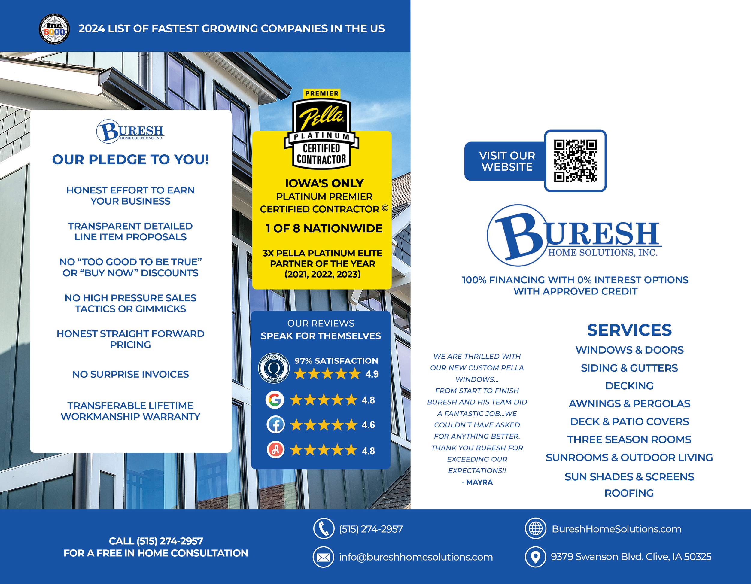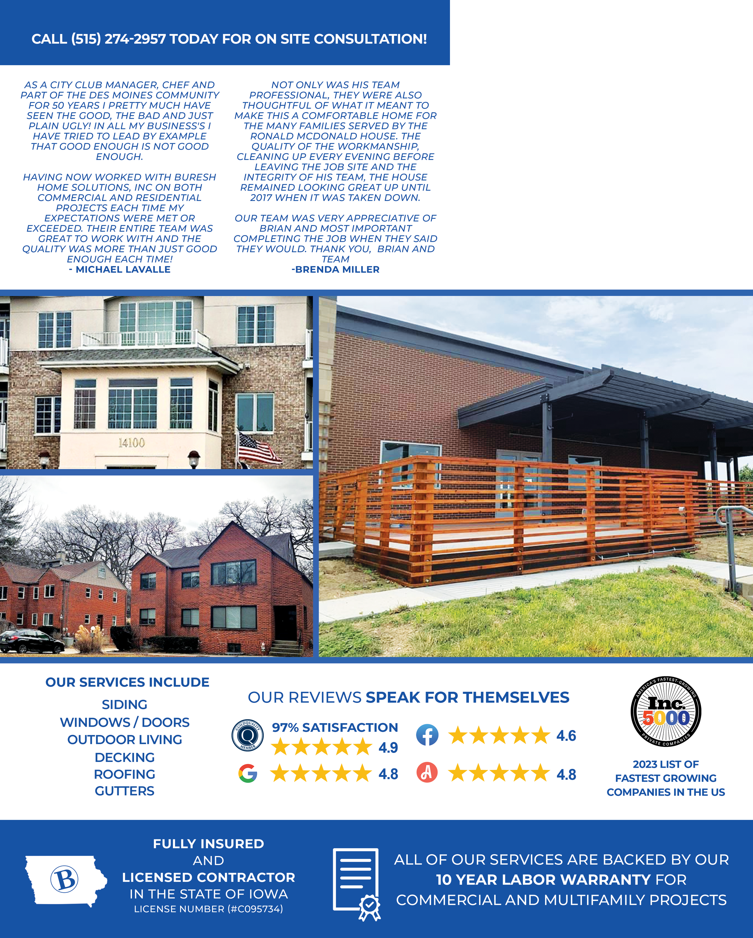 Buresh Home Solutions is a trusted Iowa-based home improvement and exterior remodeling company serving Central and Eastern Iowa. Since 2003, they’ve helped homeowners with projects like window and door replacement, siding, gutters, decks, and roofing. Buresh Home Solutions maintains a reputation for thoughtful craftsmanship and a customer-first approach as they grow their presence across markets.